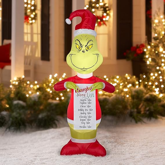 Dr. Seuss The Grinch Inflatable Naughty List Christmas Holiday Lawn Decor 5.5ft Tall by Gemmy Industries Air blown Lights Up
