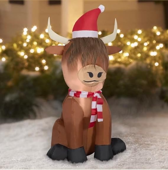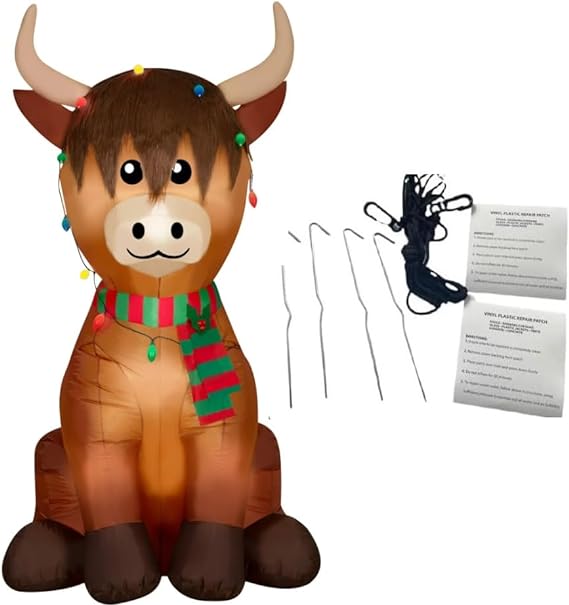 Christmas Inflatable Scotland Highlander Cow Mega 6 Foot Size – LED Lighted Holiday Outdoor Yard Blow-Up Air-Blown Decoration