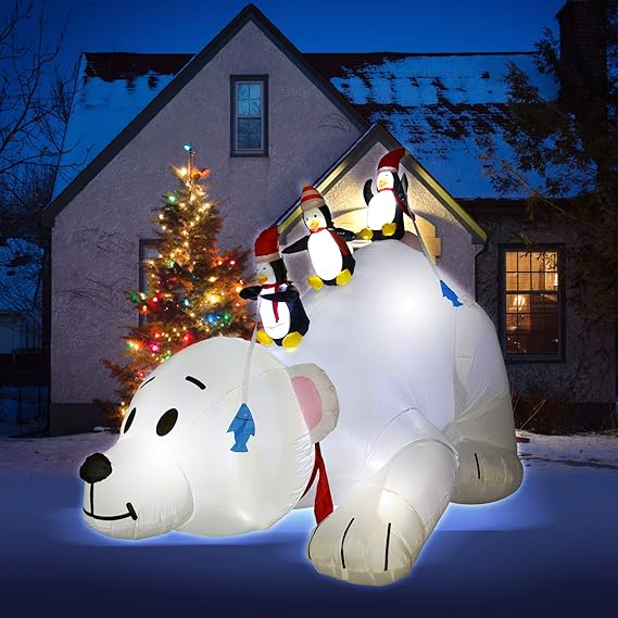 6 Ft Christmas Inflatables Outdoor Decorations, LED Light Up Polar Bear and Penguin Inflatable Christmas Blow Up Yard Decorations for Garden Lawn Indoor