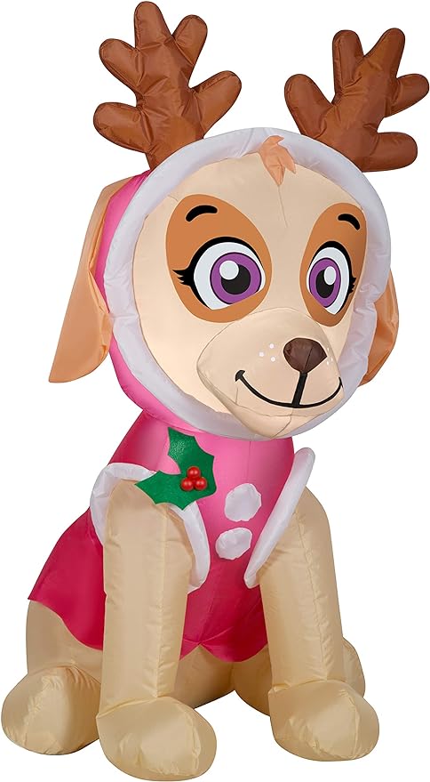 Christmas Air blown Inflatable Skye in Pink Snow Outfit w/Antlers Nick, 3.5 ft Tall, Pink