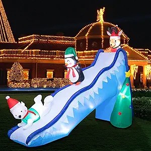 10 FT Christmas Inflatables Outdoor Decorations, Funny Christmas Inflatables Slide with Penguin, Polar Bear, Reindeer Blow Up Yard Decorations with Built-in Lights for Yard Lawn Garden Party Decor