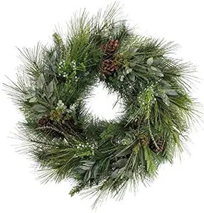 30″ Wellington Fir Pine Spruce Decorative Wreath 2 Tone Green with 400 Tips Berries and Pinecones (Unlit)