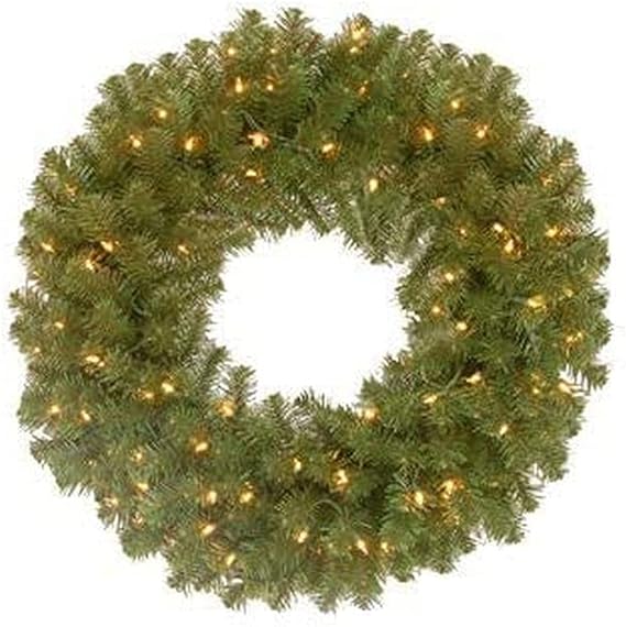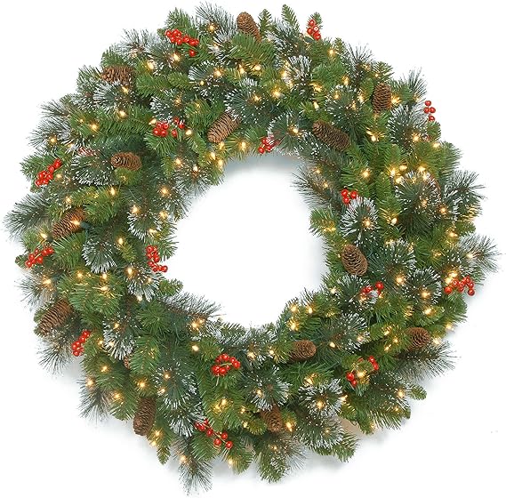 National Tree Company Pre-Lit Artificial Christmas Wreath, Green, North Valley Spruce, White Lights, Christmas Collection, 24 Inches