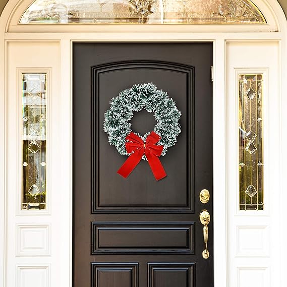 6 Christmas Wreath 9.5″ with Red Velvet Bow Tinsel Wreaths Crafts for Door Kitchen Decor Pine Indoor Decorations Home Window Decoration Holiday Crafting