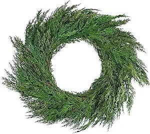 24″ Diameter Premium Faux Cedar Wreath – Realistic Christmas Outdoor Wreath, Indoor Holiday Decor for Front Door & Wall – Festive Artificial Green Wreath