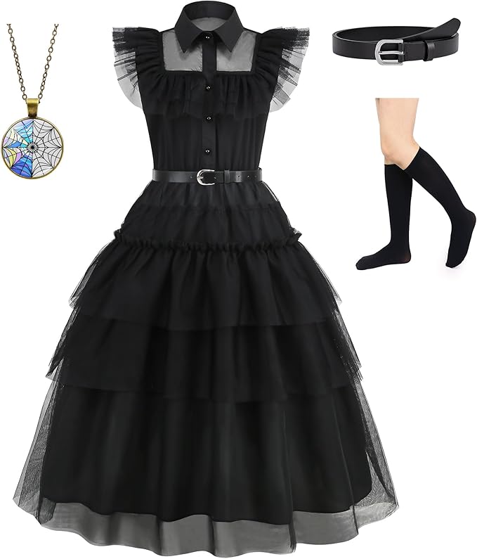 Black Wednesday Addams Costume Girls Dress Kids Family Costumes Halloween Costumes