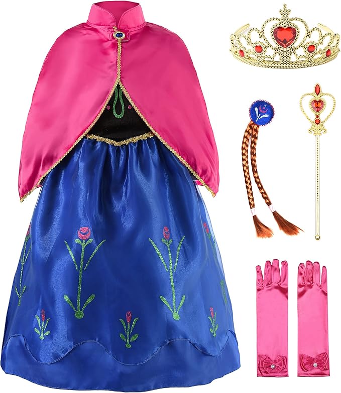 Princess Costume Fancy Dress Up with Accessories(Crown+Wand+Earrings+Gloves)
