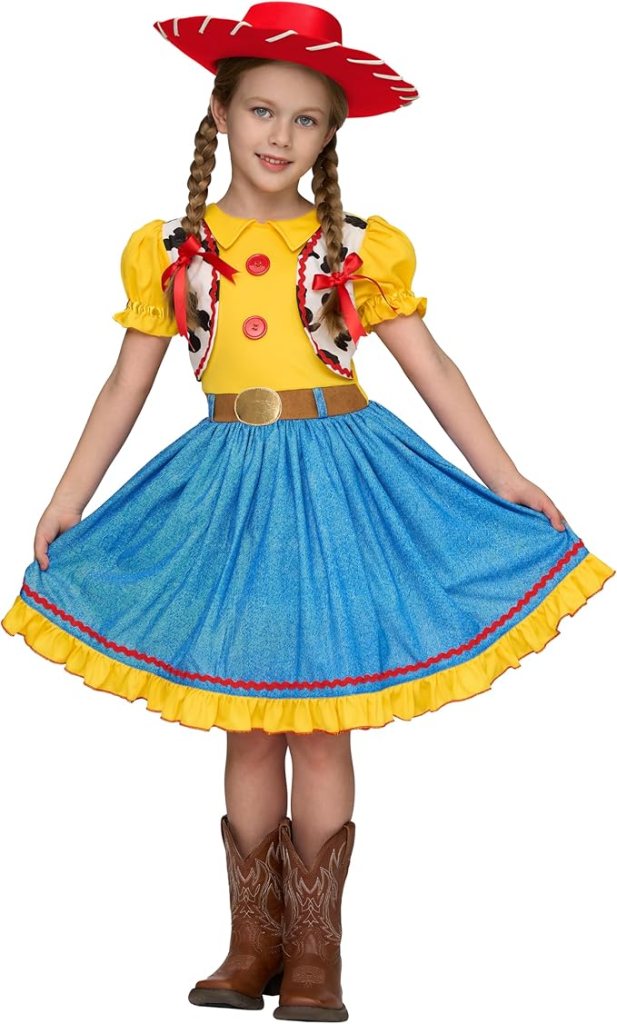 Halloween Cowgirl Costumes for Girls, Kids Cowgirl Outfit with Hat Bandana