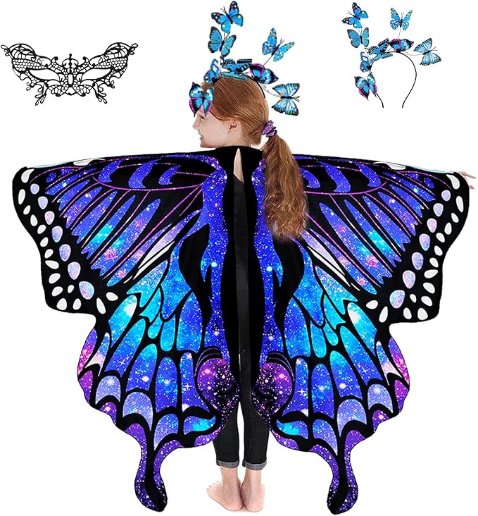 Butterfly Wings for Girls, Butterfly Costume for Halloween Party Kids Fairy Wing with Mask and Headband