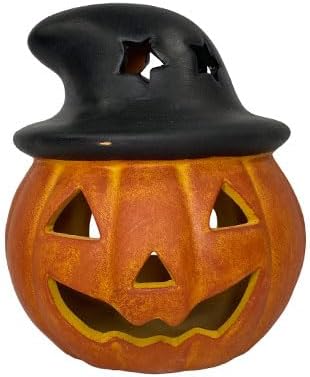 Trends Artisanal Terra Cotta Jack-O-Lantern with Witch Hat Luminary