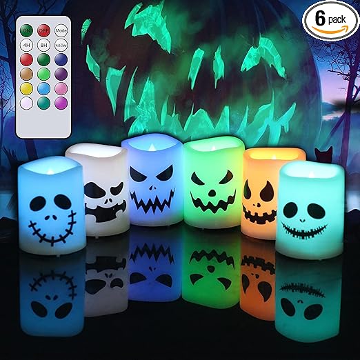 Halloween Flameless Votive Candles Color Changing with Remote Timer, Battery Operated LED Tealight Candles for Halloween Home Decoration