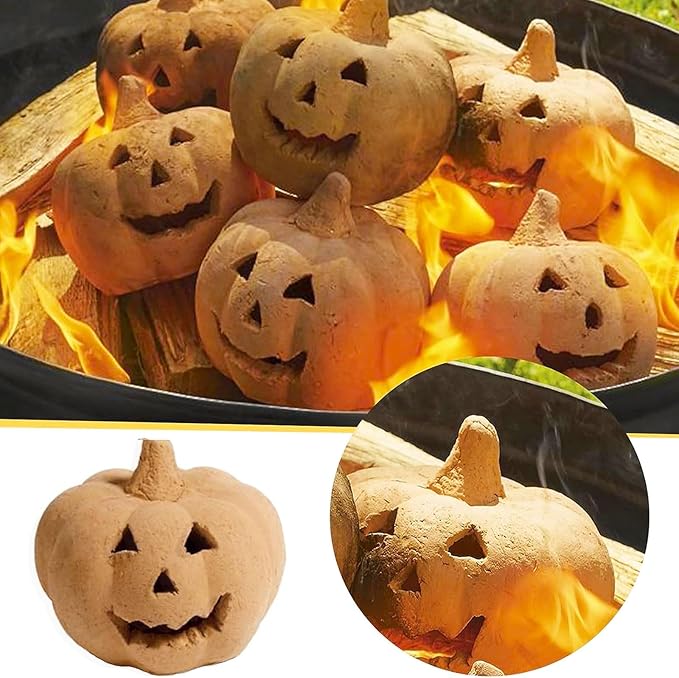 Terracotta Pumpkin Ornament, Halloween Decor with Spooky Glow, Halloween Pumpkin Candle Holder, Halloween and Fall Ornament Round Lightened Pumpkin for Front Porch