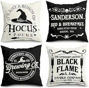 Halloween Decorations Pillow Covers 18×18 Set of 4 Halloween Decor Indoor Outdoor Hocus Pocus Farmhouse Saying Halloween Decorative Clearance Cushion Cases Party Supplies for Home Sofa Couch Bed Chair