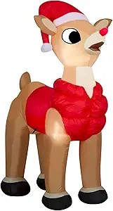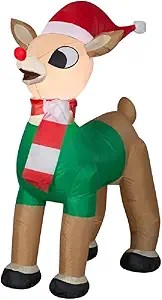 Gemmy Christmas Inflatable Rudolph The Red Nosed Reindeer in Santa Hat and Scarf, 3.5 ft Tall