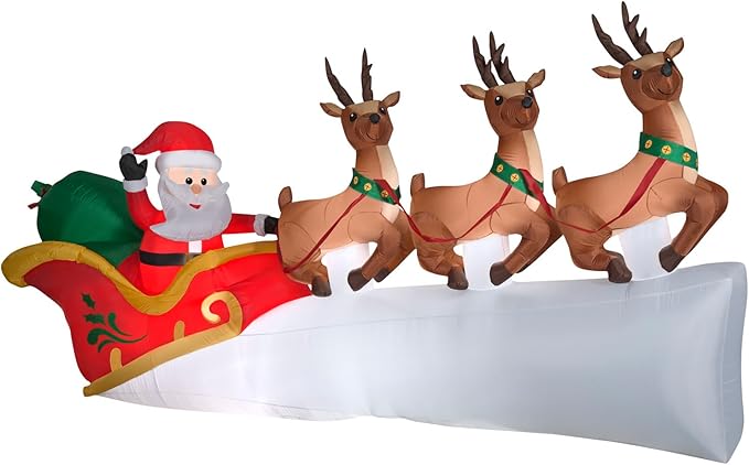 Gemmy Christmas Inflatable Santa’s Sleigh with Flying Reindeer, 5.5 ft Tall