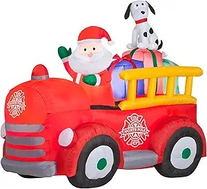 Gemmy Christmas Inflatable Santa’s Vintage Fire Truck, 5 ft Tall