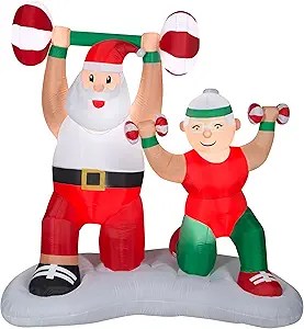 Gemmy Christmas Inflatable Santa and Mrs. Claus Workout Scene, 6.5 ft Tall