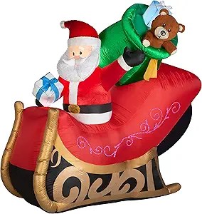 Gemmy Animated Christmas Inflatable Santa in Sleigh, 7 ft Tall
