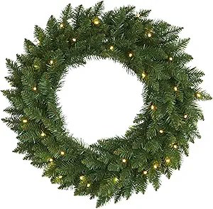Nearly Natural 24in. Green Pine Artificial Christmas Wreath with 35 Clear LED Lights