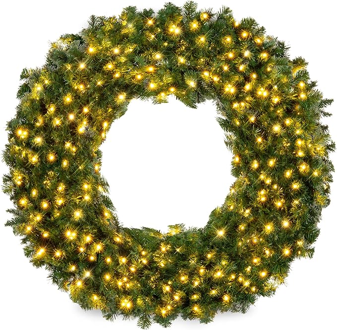 Best Choice Products 48in Large Artificial Pre-Lit Fir Christmas Wreath Holiday Accent Decoration w/ 200 LED Lights, 714 PVC Tips