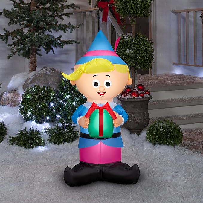 Gemmy Photorealistic Christmas Airblown Inflatable Excited Buddy The Elf S LG WB, 6 ft Tall, Green