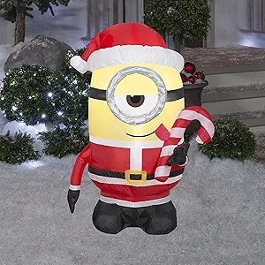 Gemmy Christmas Airblown Inflatable Inflatable Minion Stuart Licking Candy Cane, 3.5 ft Tall